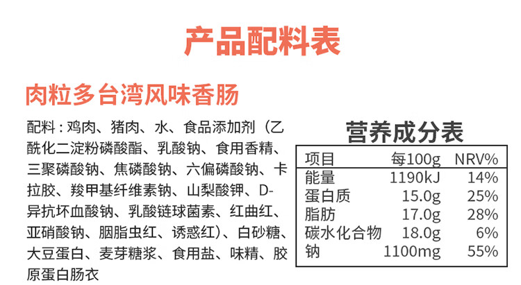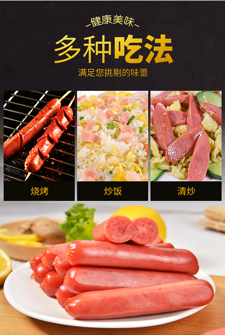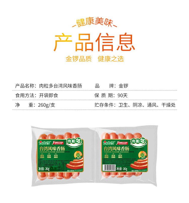 商品名称:金锣 火腿肠出游款 肉粒多台湾风味香肠260g/袋出游露营烧烤肠
