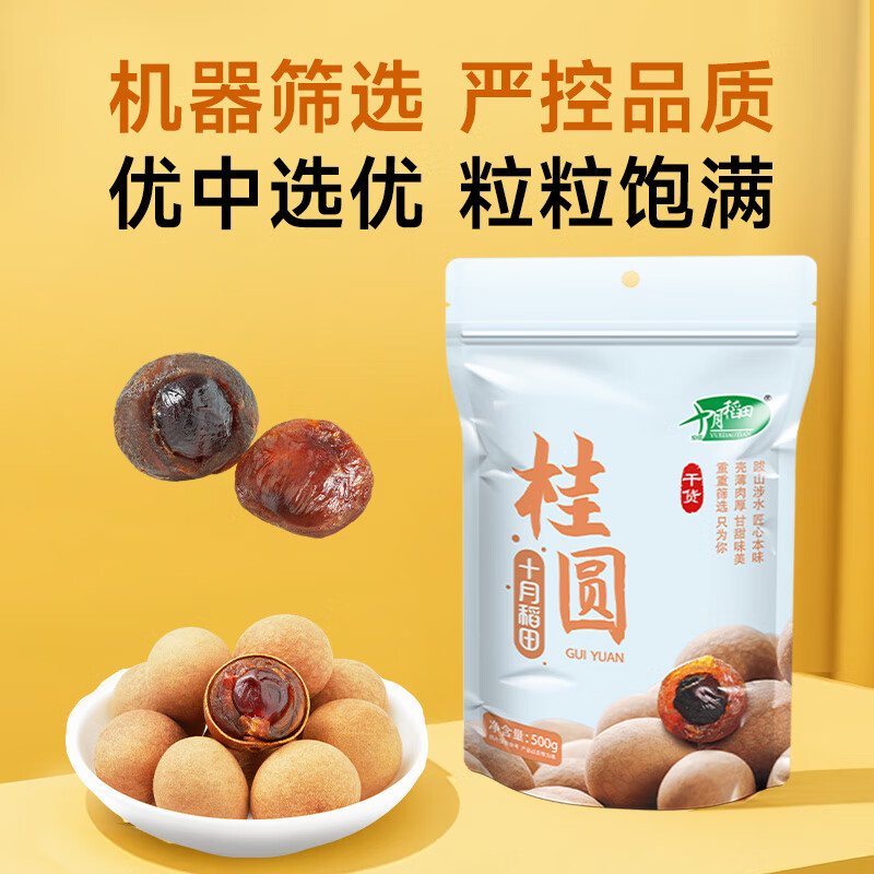 商品名称:十月稻田 桂圆干 500g 带壳龙眼干 肉厚甘甜 休闲零食 枸杞红枣泡茶八宝粥
