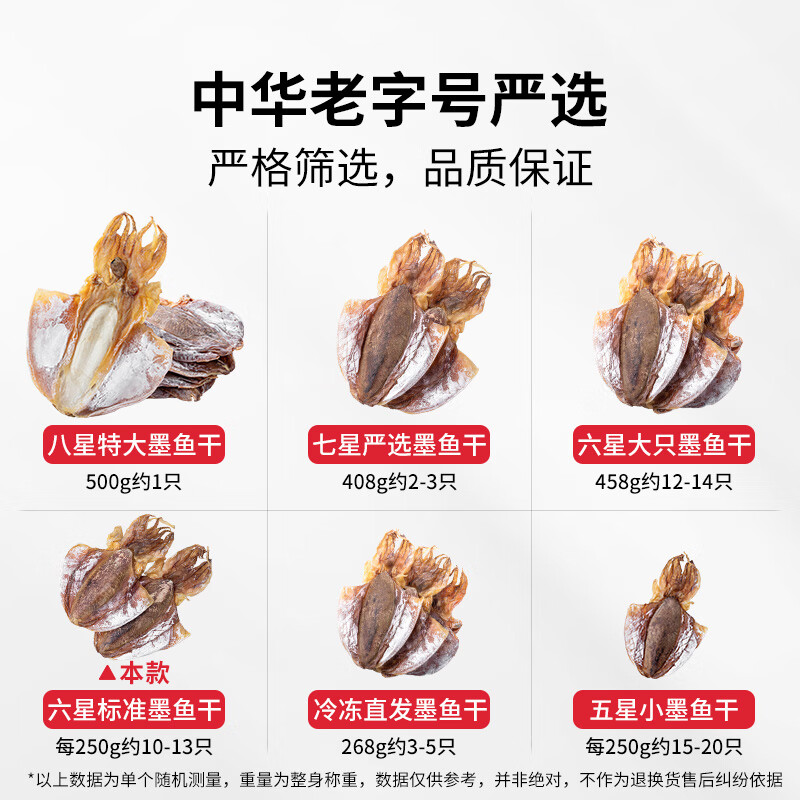 商品名称:方家铺子中华老字号 六星墨鱼干250g 东海产墨鱼淡干乌贼目鱼干 海鲜特产