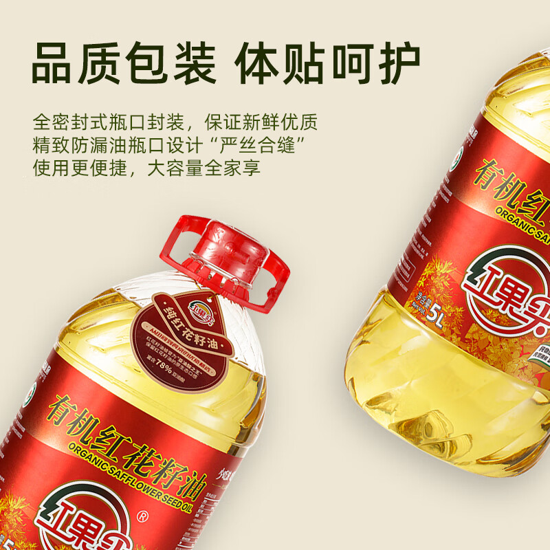 商品名称:红果实 新疆有机红花籽油5L食用油礼盒装 进口原料 物理压榨 高亚油酸
