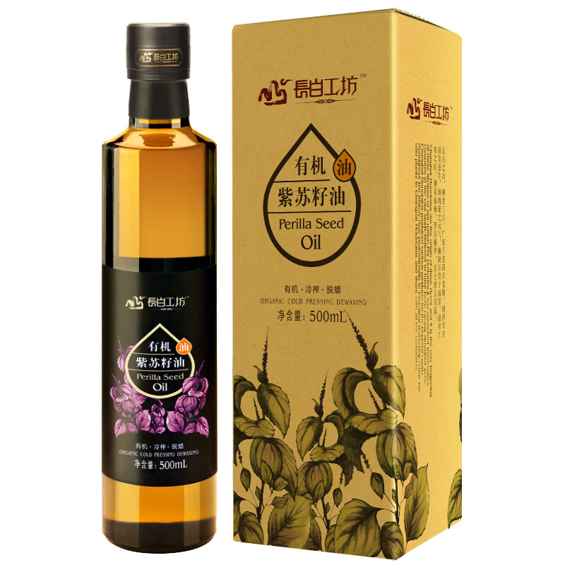 长白工坊四项有机紫苏籽油500ml冷榨紫苏油口服直接喝空腹直饮亚麻酸纯
