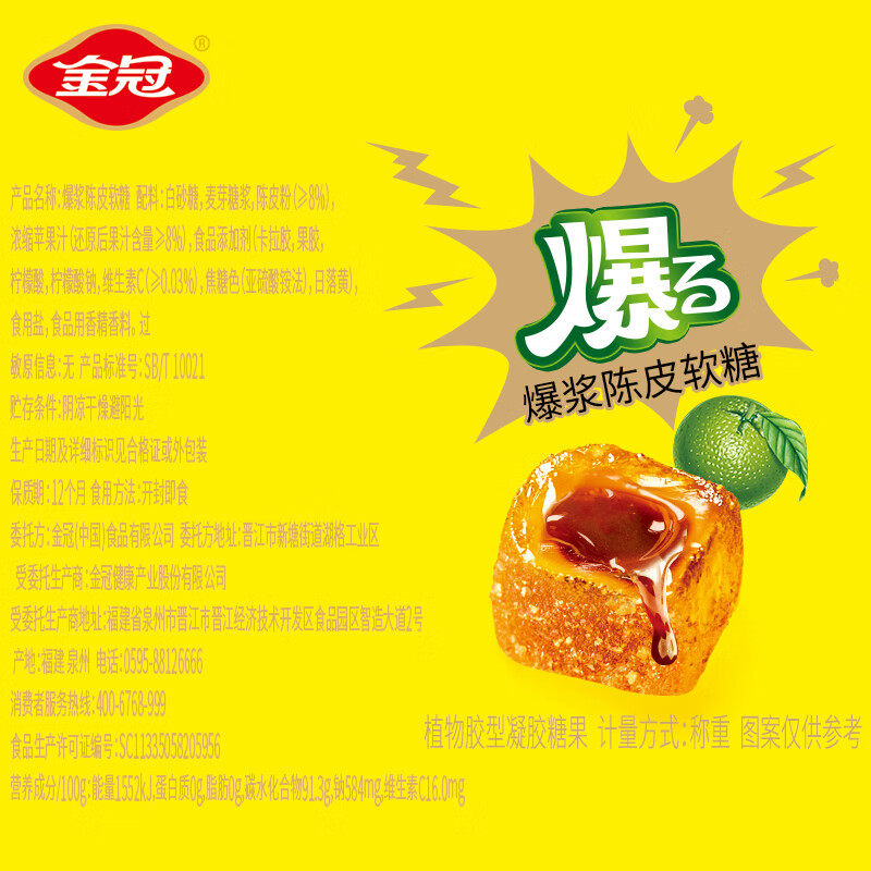 商品名称:金冠 爆浆陈皮糖 500g 约100颗 夹心软糖 白鹿同款 喜糖 休闲零食