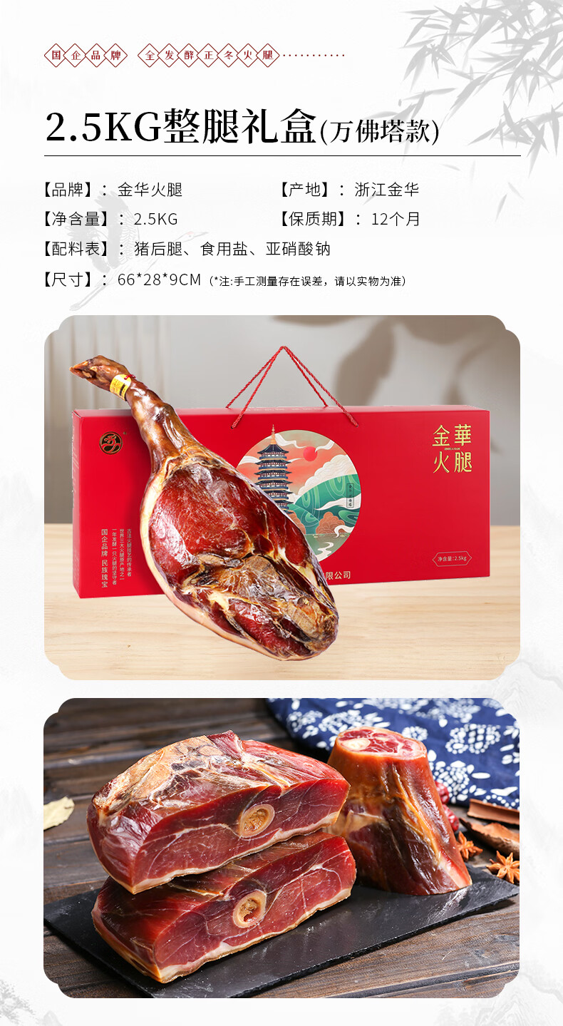 商品名称:金华火腿八方来财整腿纯肉礼盒5斤正宗特产团购礼品腊味年货春节送礼礼物