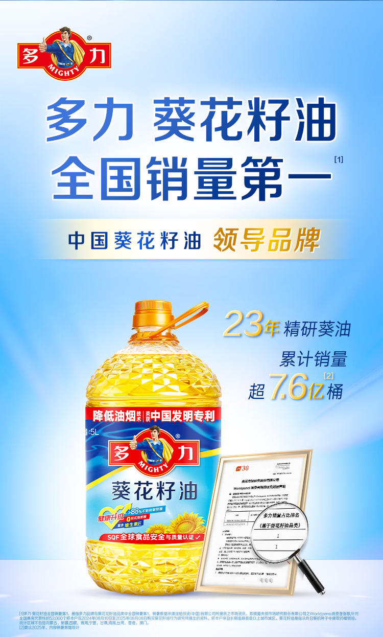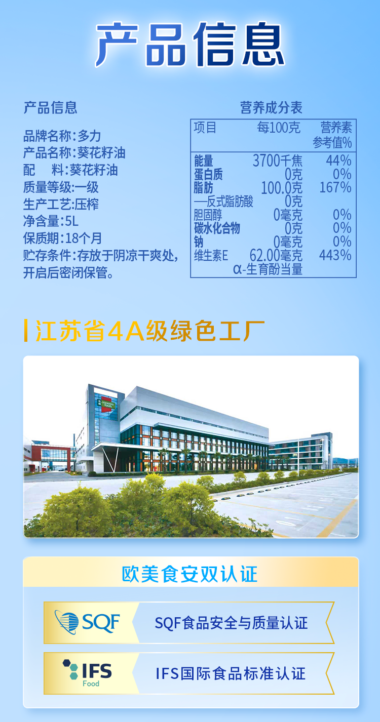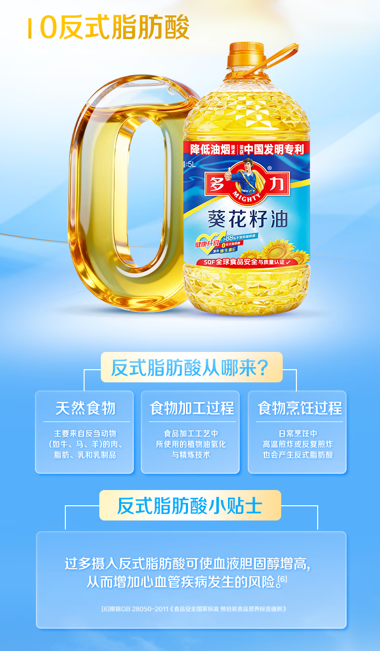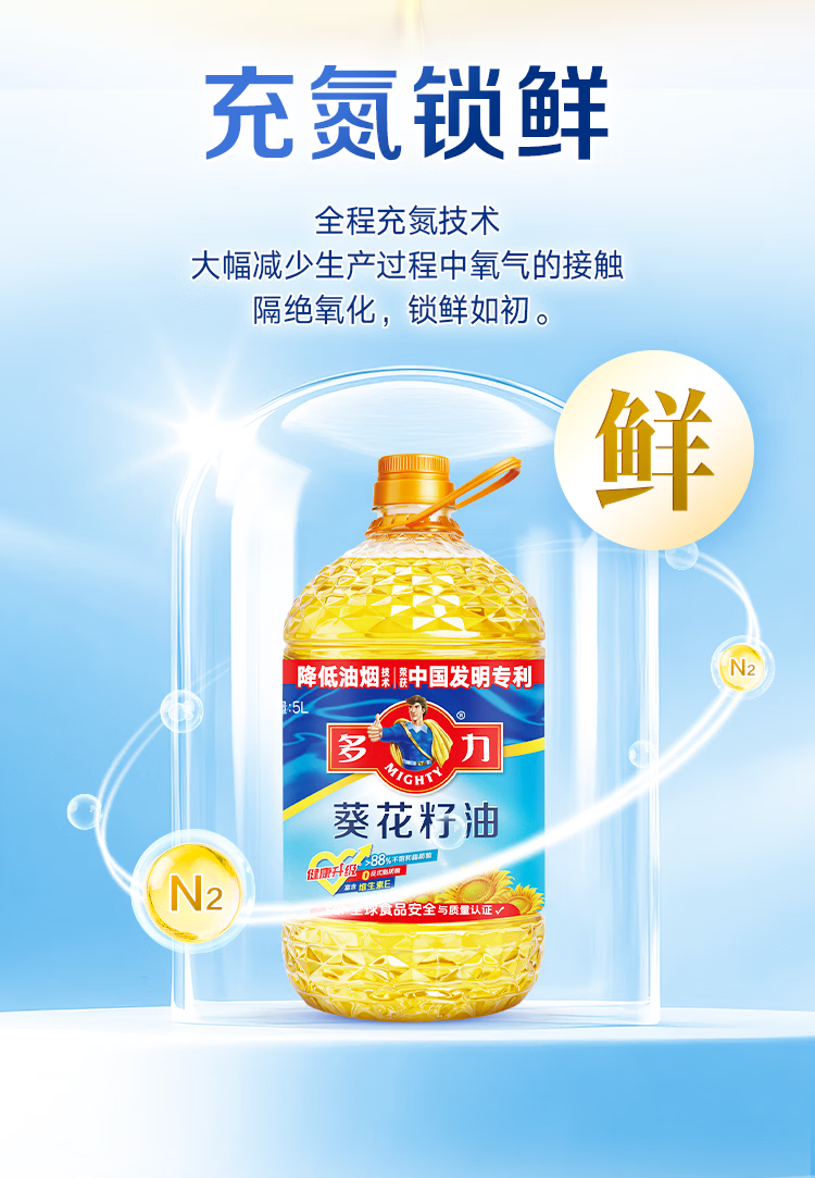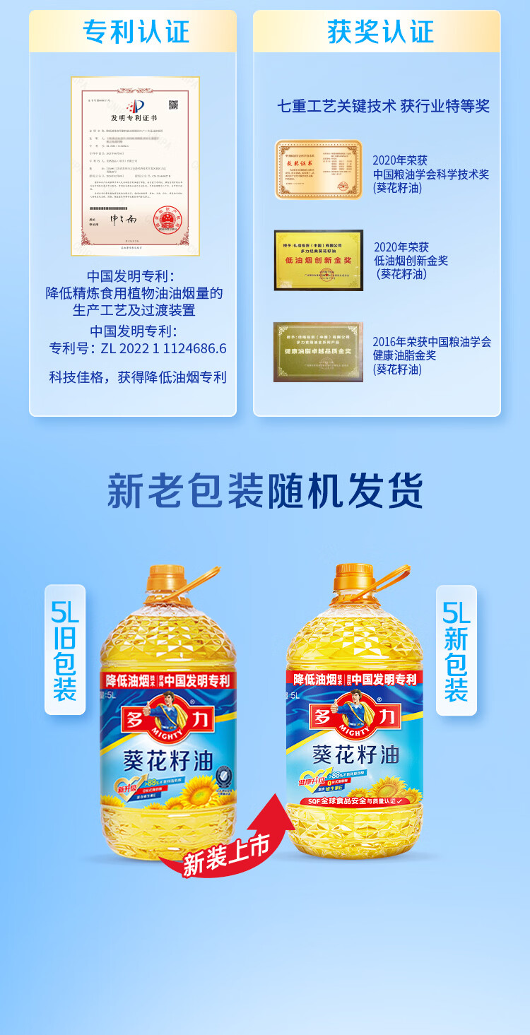 商品名称:多力经典葵花籽油5L+238ml食用油物理压榨零反式脂肪酸