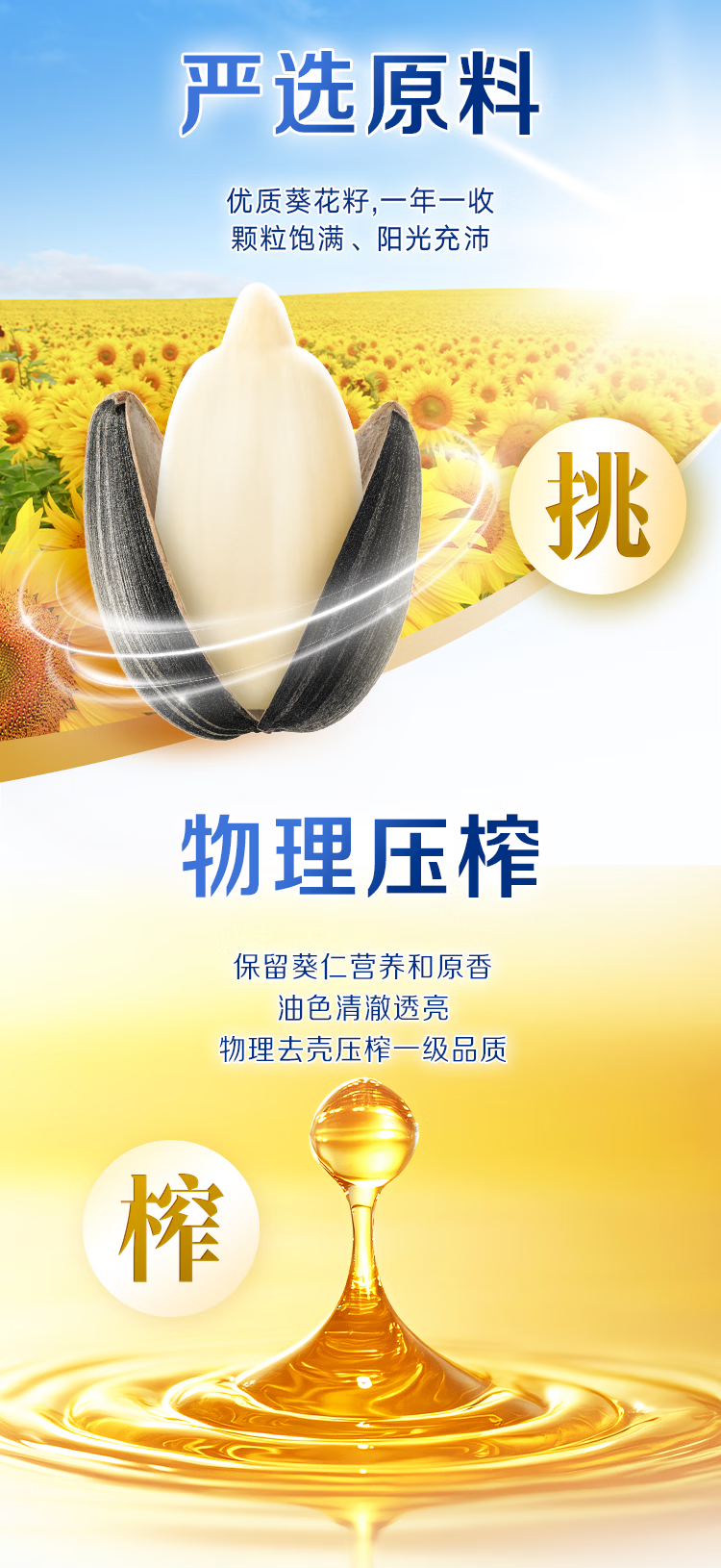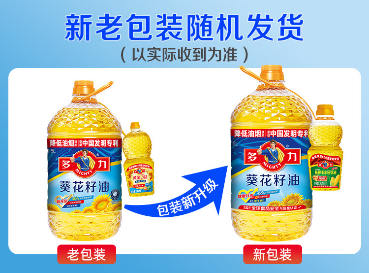 多力经典葵花籽油5L+238ml食用油物理压榨零反式脂肪酸