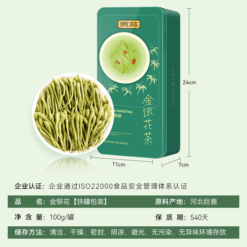 贡苑 金银花茶100g 特优级清凉茶干花火泡水去婴儿童湿热疹泡澡搭菊花