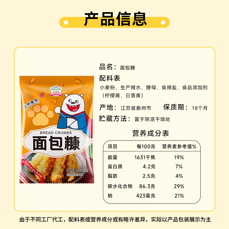 商品名称:吉得利面包糠260g 袋装 油炸裹粉家用炸鸡炸虾烘焙原料
