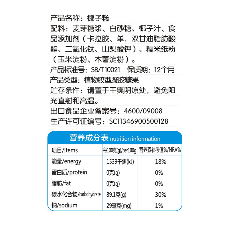 商品名称:春光食品 海南特产 椰子糕 160g 儿童水果软糖 婚庆喜糖 休闲零食