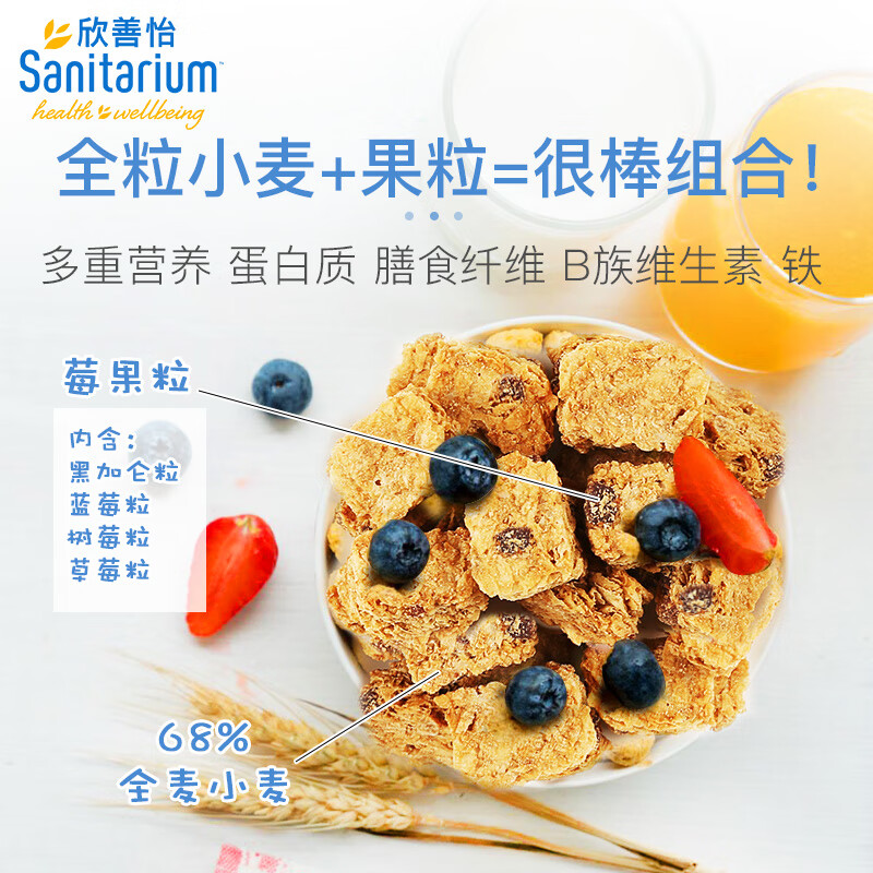 商品名称:欣善怡澳洲进口野莓水果麦片500g即食早餐谷物低脂非燕麦片块全麦脆代餐