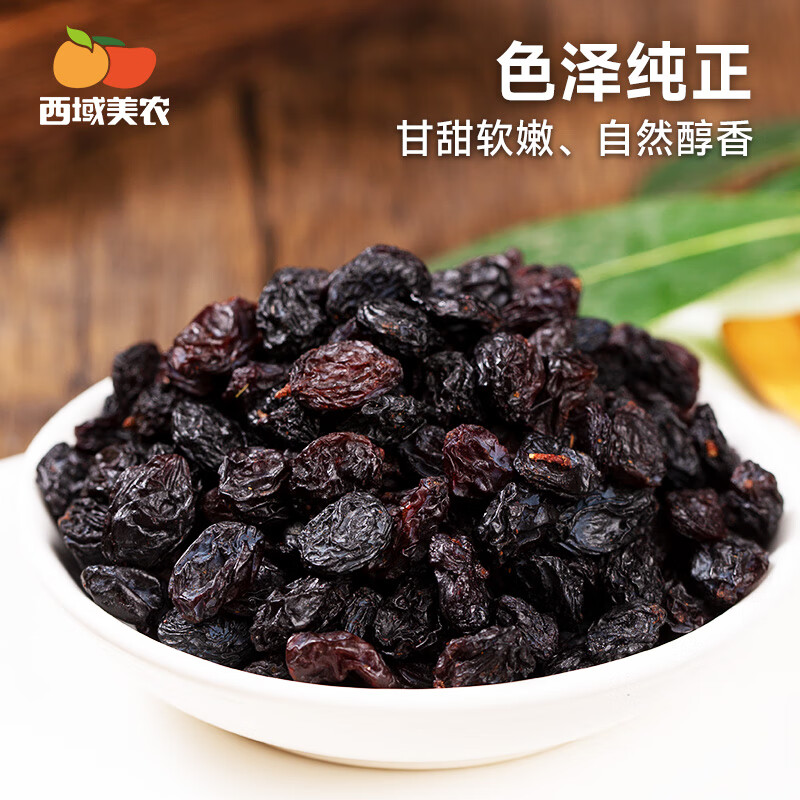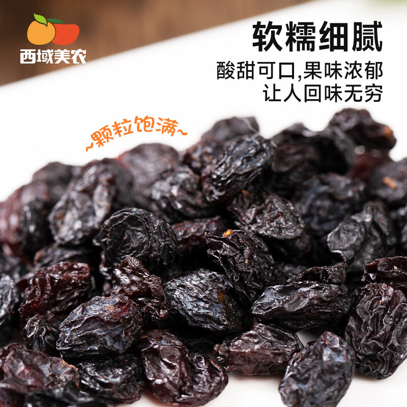 商品名称:西域美农 黑加仑葡萄干250g 新疆特产大颗粒吐鲁番提子干休闲零食烘焙原料