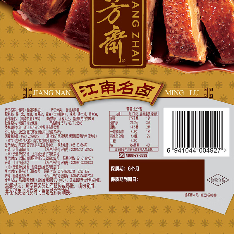 商品名称:五芳斋酱鸭熟食酱卤味方便速食 休闲零食下酒菜预制菜 300克真空袋装