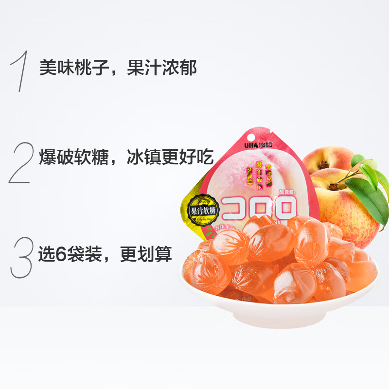 商品名称:悠哈 酷露露果汁软糖 52g 桃子味 休闲零食 儿童糖果 网红零食