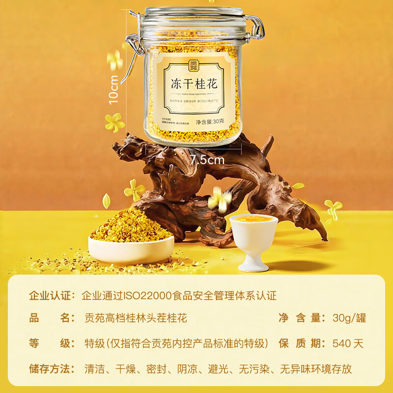 商品名称:贡苑桂花茶【高档冻干】头茬新花11A桂林原产鲜桂花干泡酒搭菊花茶30g