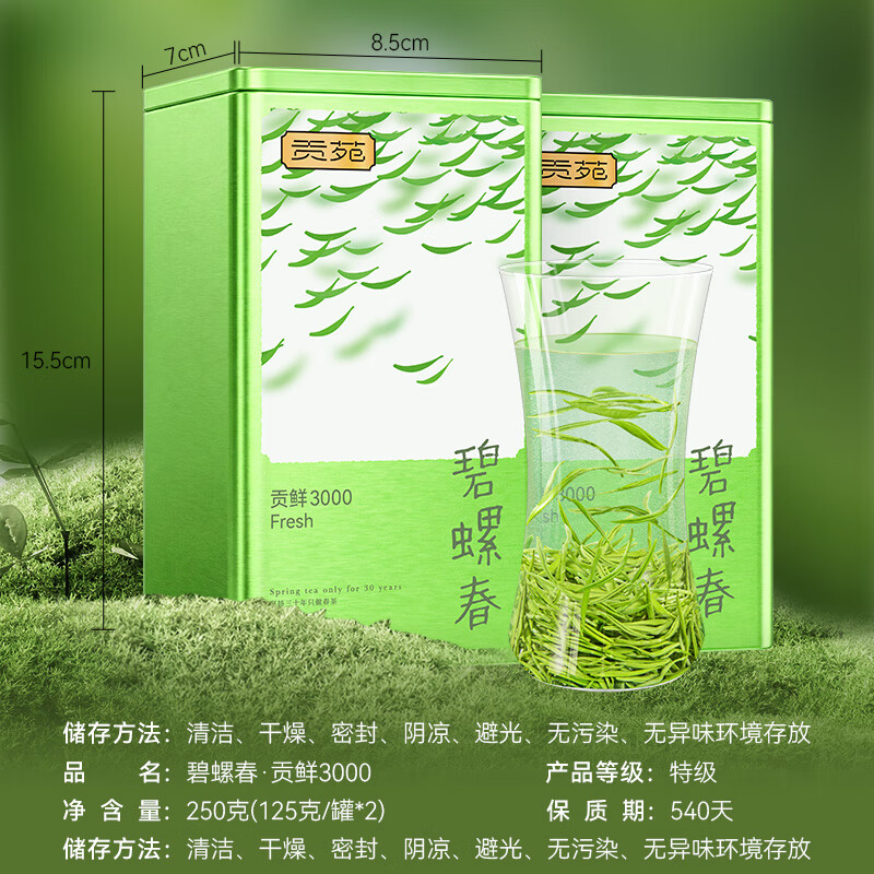 商品名称:贡苑绿茶苏州特级碧螺春250g明前新茶嫩芽花果香茶叶散装自己喝