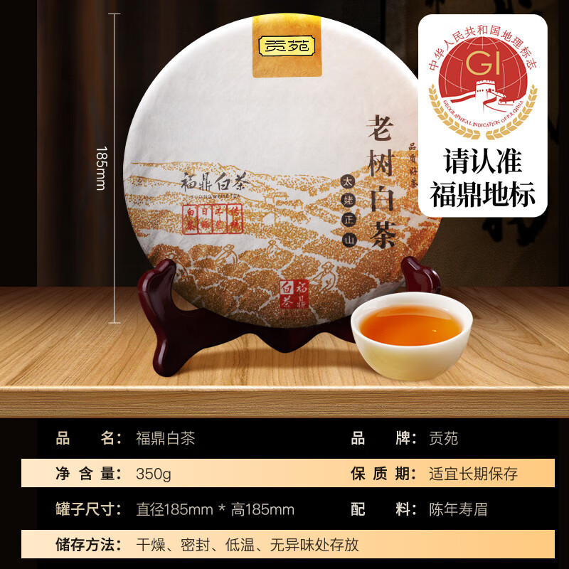 商品名称:贡苑茶叶白茶福建福鼎寿眉一级经典老树白茶太姥正山原产礼品包装350g