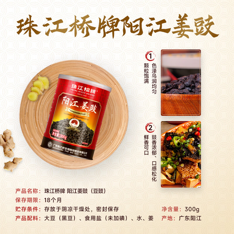商品名称:珠江桥牌阳江姜豉豆豉300g 0防腐剂0着色剂广东特产阳江豆豉 中华老字号