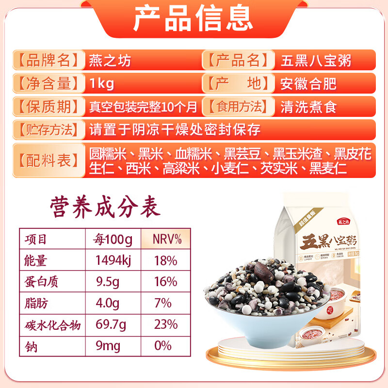 商品名称:燕之坊五黑八宝粥2斤11种谷物 黑米 芡实米 血糯 腊八粥米原料