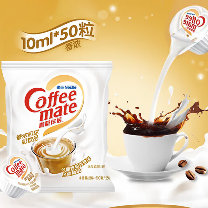 商品名称:雀巢(Nestle)咖啡奶茶伴侣 香浓10ml*50粒 含生牛乳 奶油球 0反式脂肪酸