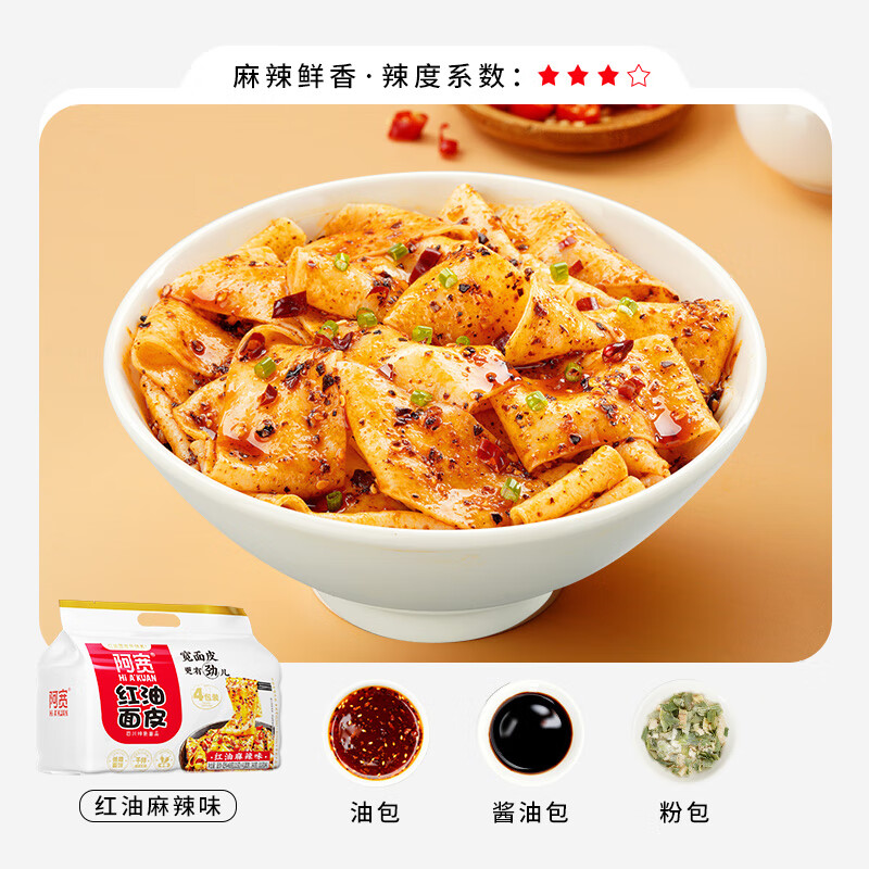 商品名称:阿宽红油面皮四包装 非油炸方便面 干拌面红油麻辣味 460g*2提泡面