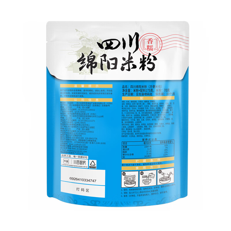 商品名称:阿宽四川绵阳米粉方便面速食粉丝细米线175g*4袋装 非油炸零食免煮
