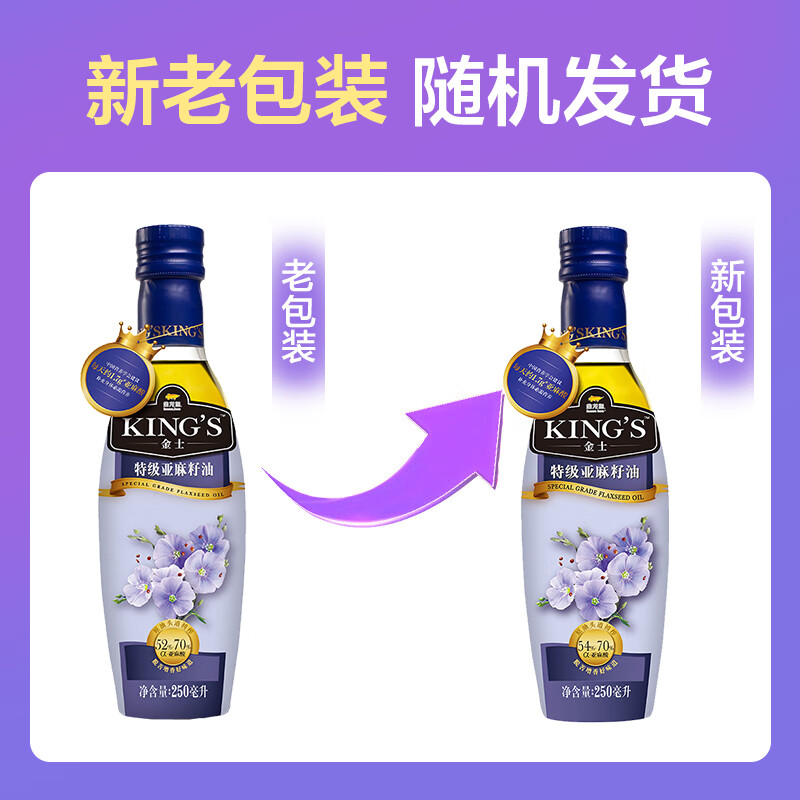 商品名称:金龙鱼 KING’S 保真亚麻籽油 食用油 进口原料 特级初榨 亚麻籽油250ml