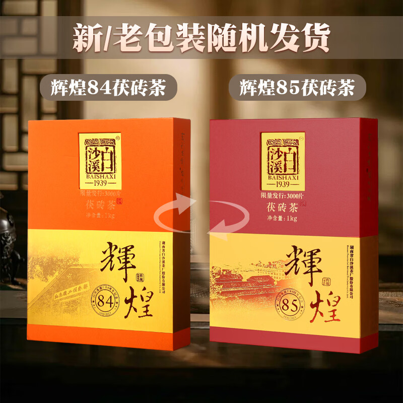 商品名称:白沙溪茶叶湖南安化黑茶金花茯茶砖茶85周年建厂辉煌茶叶礼盒装1kg