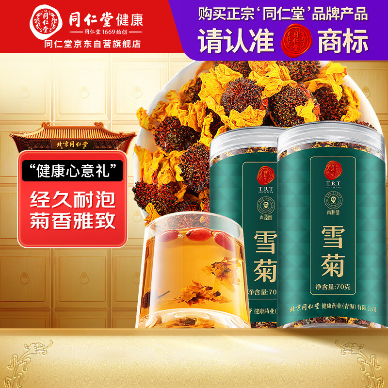 同仁堂品牌 北京同仁堂青源堂雪菊昆仑雪菊胎菊花草养生茶礼品70克*2瓶