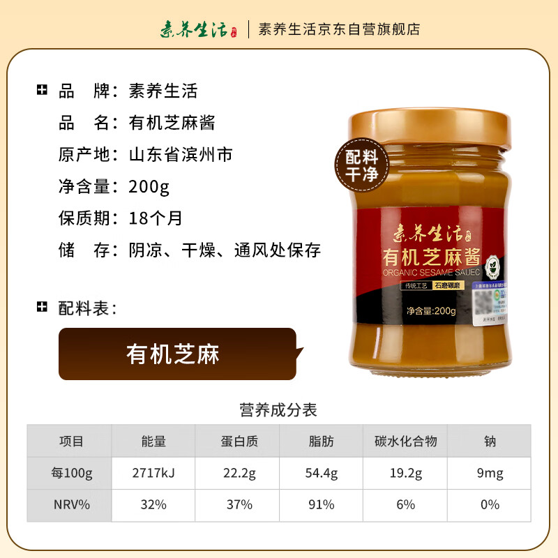 商品名称:素养生活有机白芝麻酱200g 纯芝麻酱 火锅蘸料 调味料 浓香芝麻酱 凉拌