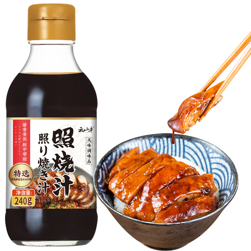 商品名称:云山半日式照烧酱汁240g 照烧鸡腿猪扒鳗鱼饭盖饭汁日式料理调味酱