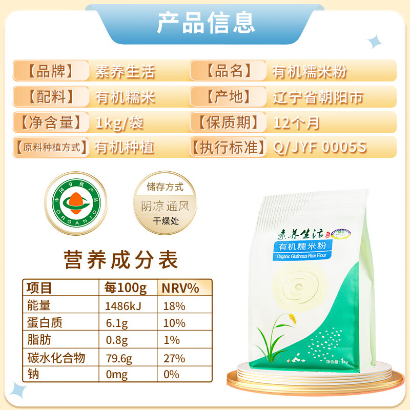 商品名称:素养生活有机糯米粉2斤 糯米面 汤圆年糕糍粑粉 雪媚娘粉 石磨糯米粉