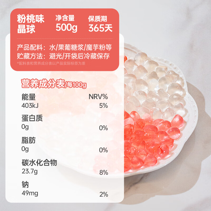 商品名称:云山半寒天晶球脆波波粉桃味杨枝甘露奶茶免煮珍珠开袋即食甜品啵啵500g