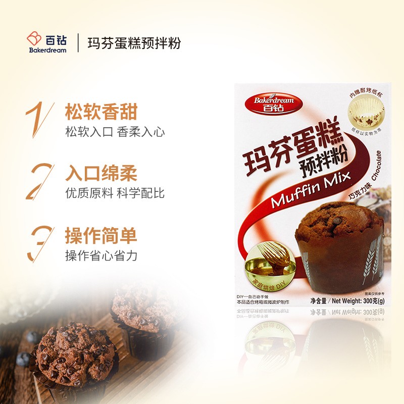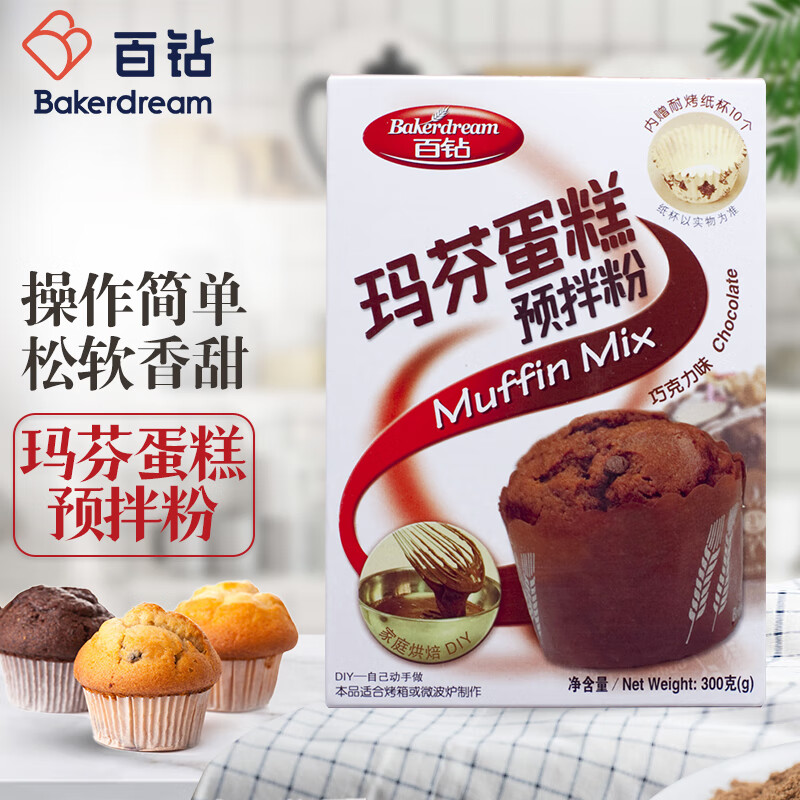商品名称:百钻玛芬蛋糕预拌粉巧克力味300g家用马芬蛋糕材料 烘焙纸杯蛋糕原料