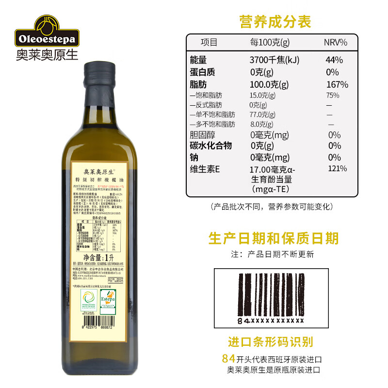 商品名称:奥莱奥原生【保真橄榄油】PDO特级初榨橄榄油1L庄园油