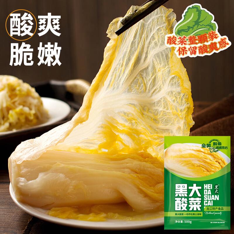 商品名称:黑大 东北酸菜颗装500g 东北酸菜 酸白菜 颗装酸菜芯 500g