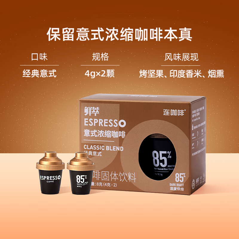 商品名称:连咖啡 鲜萃特浓冻干胶囊黑咖啡速溶咖啡粉 经典意式 试饮装2颗*4g