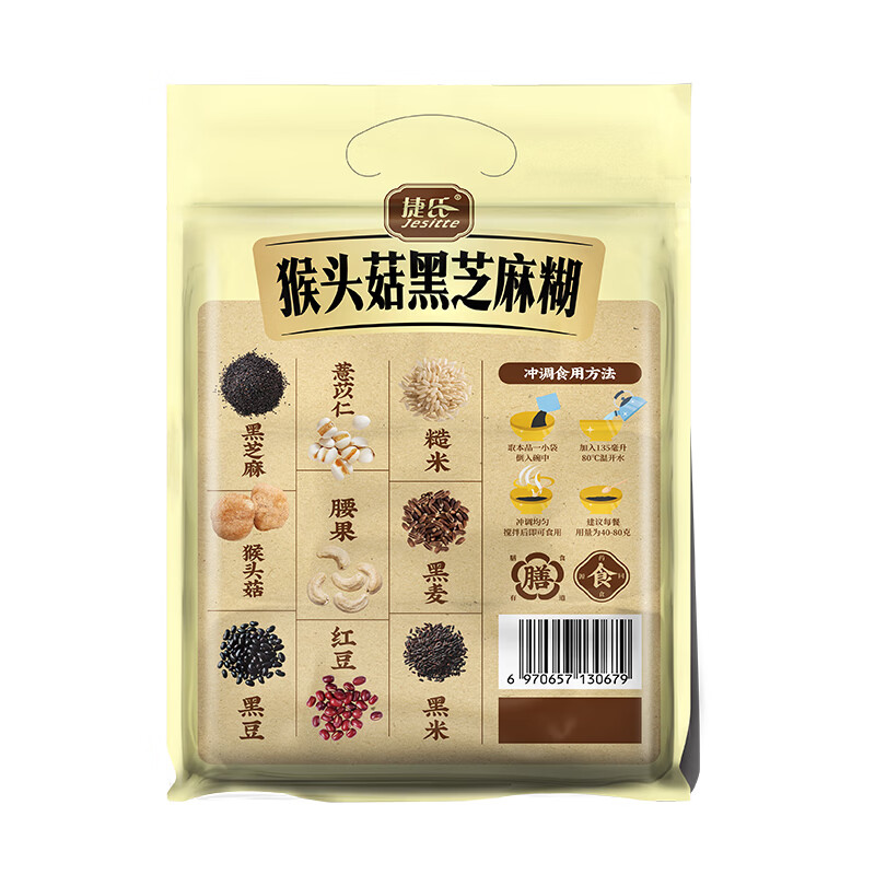 商品名称:捷氏猴头菇黑芝麻糊600g无蔗糖添加中老年代餐养护胃食品五谷物粉冲饮