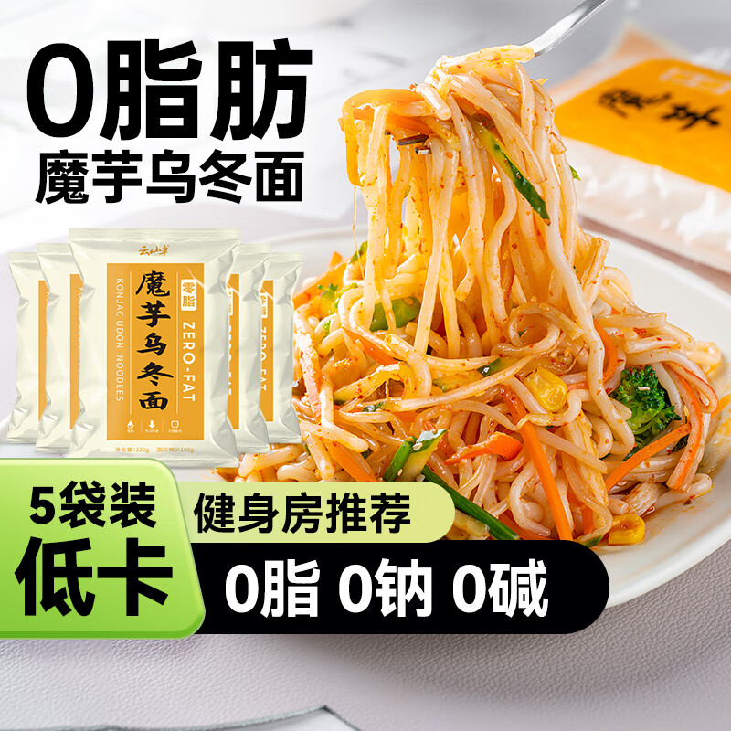 云山半0脂魔芋面乌冬面凉面免煮减低脂代餐速食品关东煮火锅食材220g*5