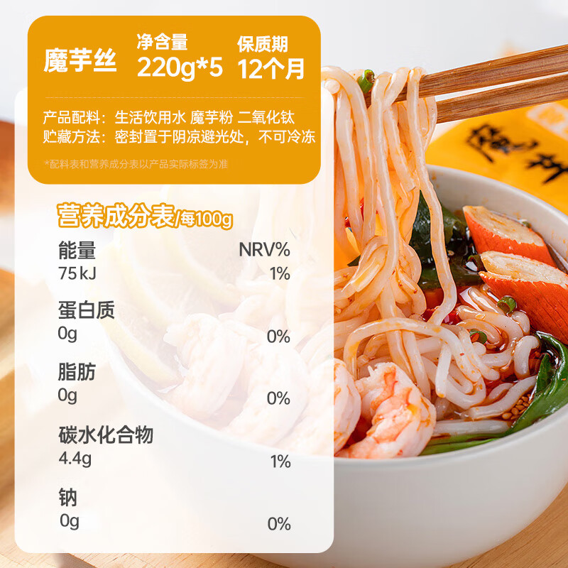 商品名称:云山半0脂魔芋面乌冬面凉面免煮减低脂代餐速食品关东煮火锅食材220g*5