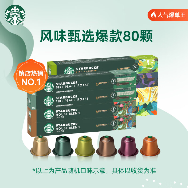 星巴克(Starbucks)胶囊咖啡多口味混享黑咖啡精选8盒80颗共441g适配Nespresso胶囊机