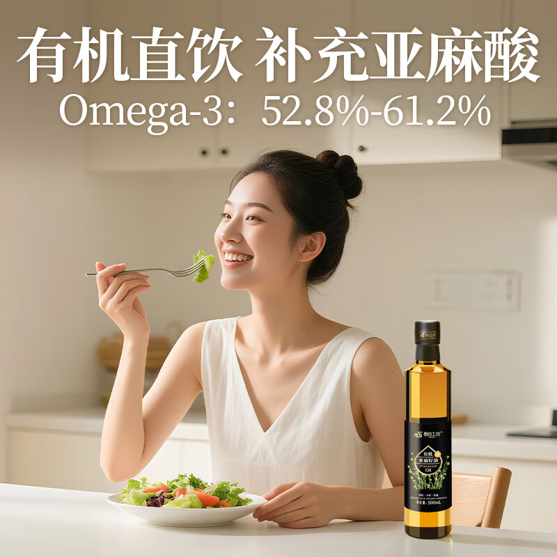 长白工坊 四项有机亚麻籽油口服100%一级冷榨亚麻油500ml直接喝直饮Omega3