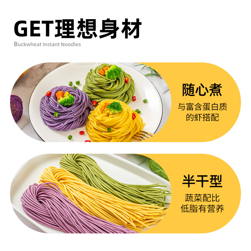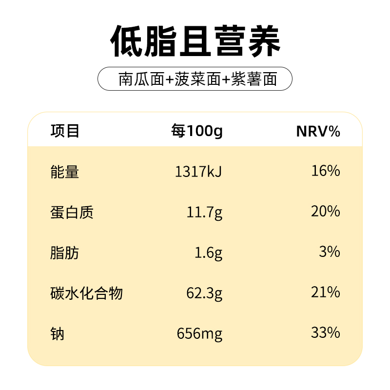 商品名称:云山半低脂三色蔬菜面条半干面方便挂面代餐主食火锅面彩虹面条拌面150g