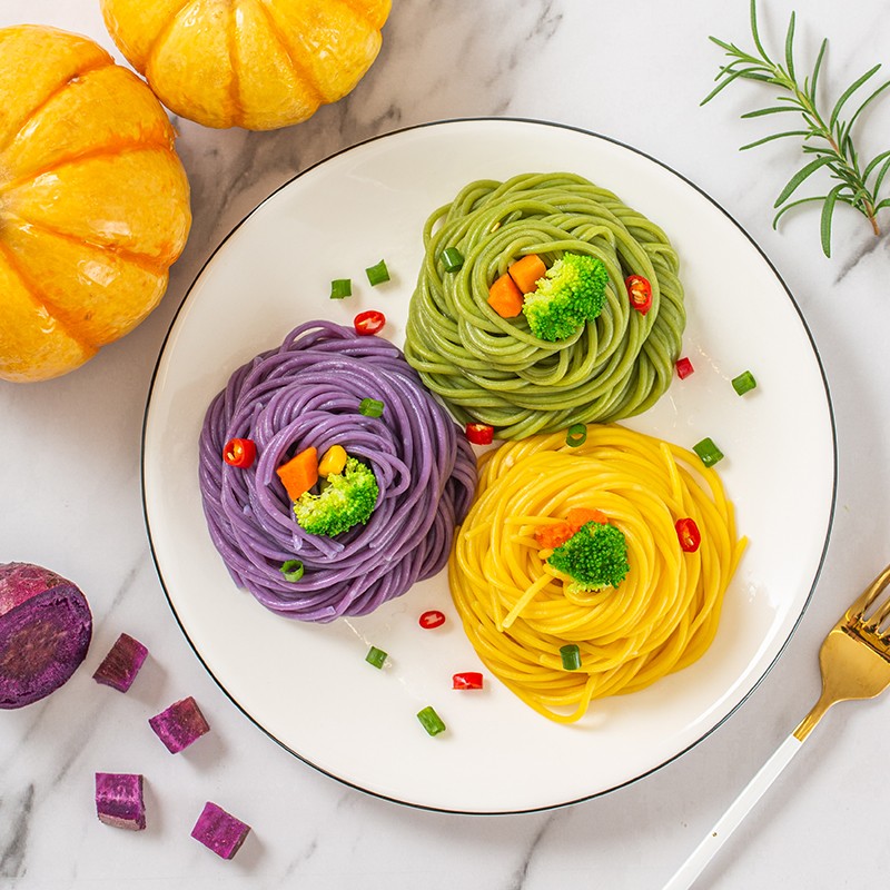 云山半低脂三色蔬菜面条半干面方便挂面代餐主食火锅面彩虹面条拌面150g