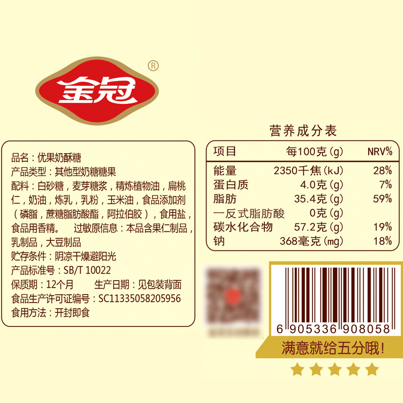 商品名称:金冠 优果奶酥 468g 杏仁味奶糖 硬糖 结婚喜糖 喜庆糖果 休闲零食
