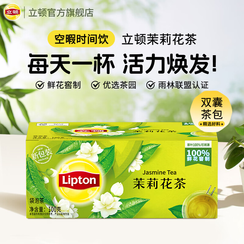 商品名称:立顿茉莉花茶安徽黄山100g 非独立袋泡双囊茶包办公室下午茶2g*50包