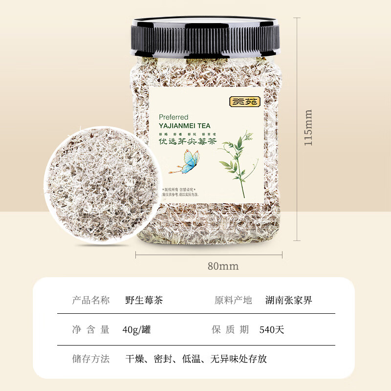 商品名称:贡苑 张家界高山莓茶40g 特优级富含黄酮龙须嫩芽尖土家永顺野生霉茶