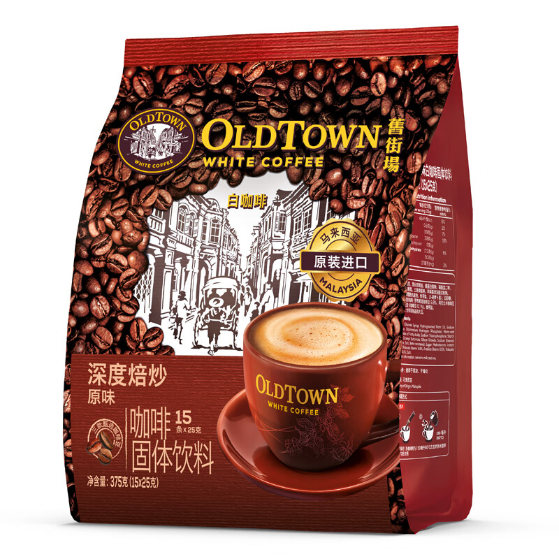 旧街场(OLDTOWN)速溶原味白咖啡马来西亚进口深度焙炒三合一咖啡粉25g*15条饮料