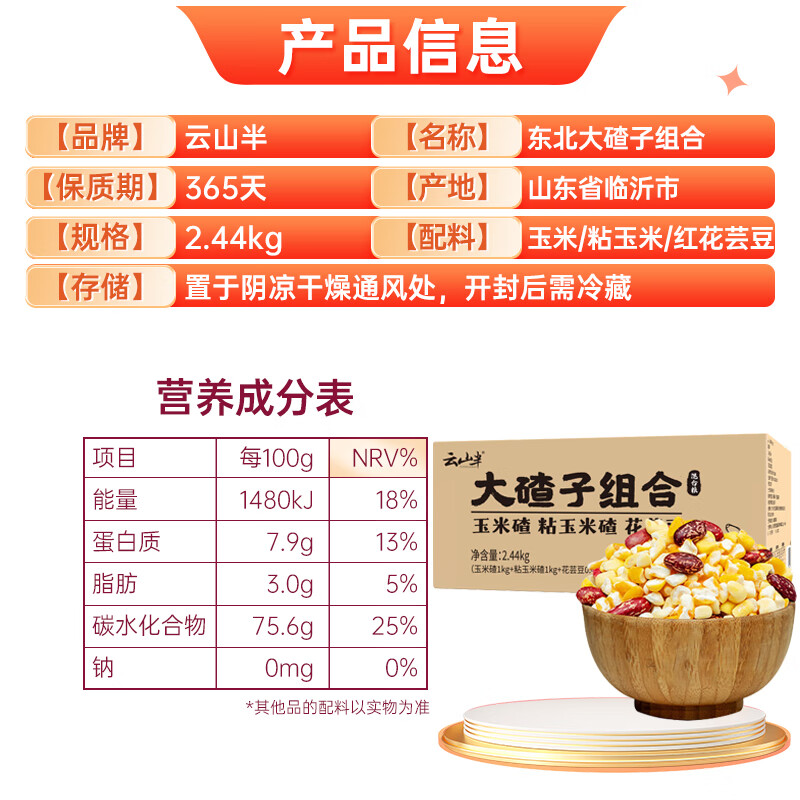 商品名称:云山半 大碴子粥米组合4.88斤 低脂早餐五谷粗粮杂粮 粘玉米红花芸豆