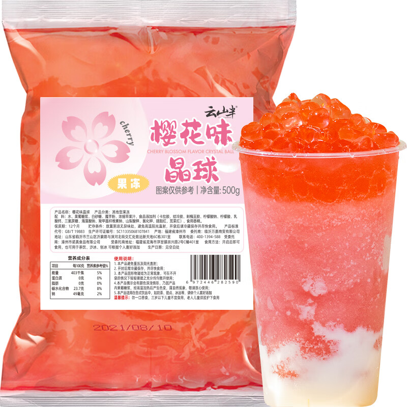 商品名称:云山半寒天晶球脆波波樱花味杨枝甘露奶茶免煮珍珠开袋即食甜品啵啵500g