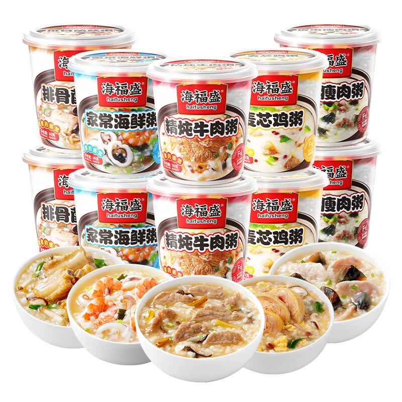 商品名称:海福盛方便速食粥早餐宵夜懒人食品冻干八宝粥经典粥5味10杯368g