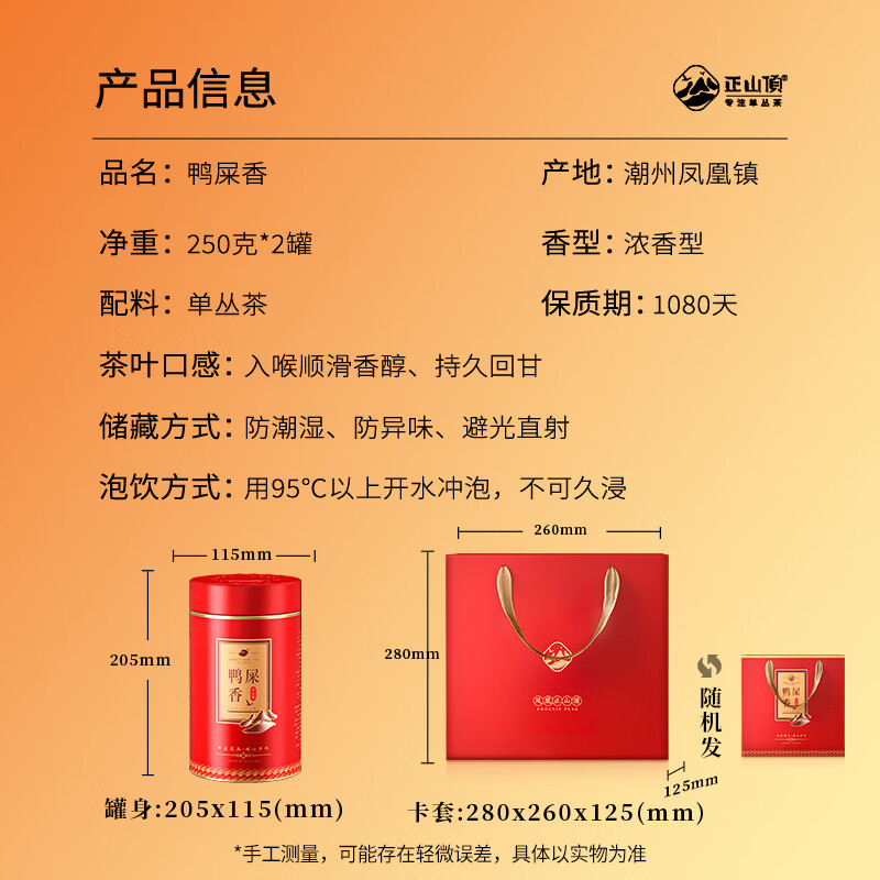 商品名称:正山顶乌龙茶顶红凤凰单枞鸭屎香特级500g足火礼盒茶叶年货送人礼品